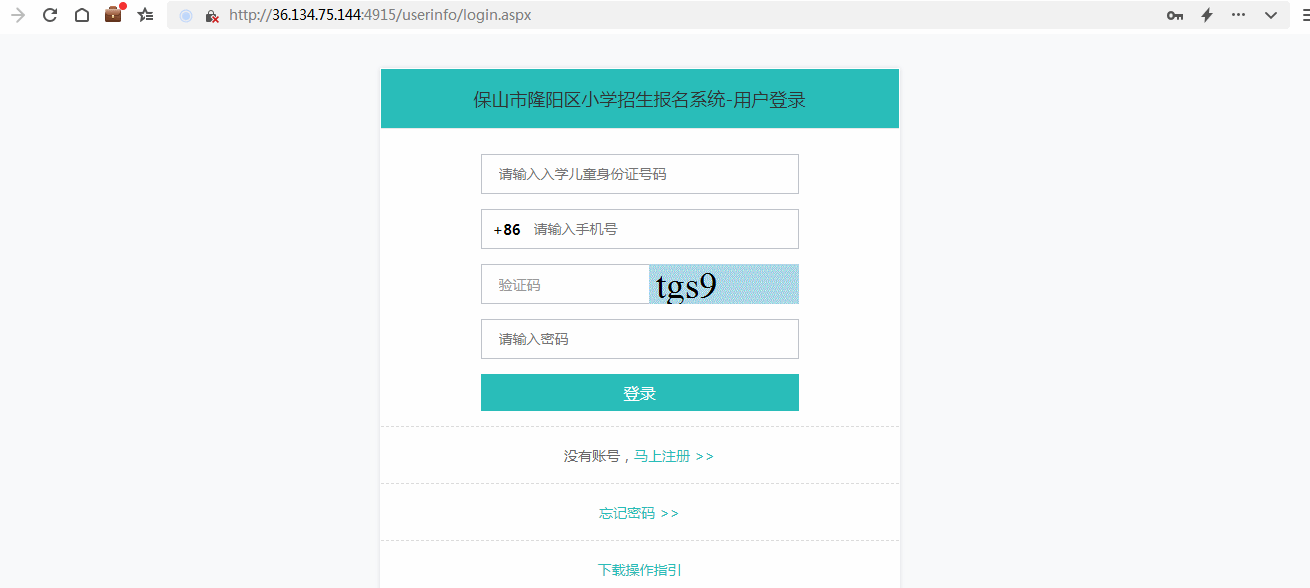“养老保险缴费记录”:指养老保险缴费记录关键信息页;“无房证明”:指不动产管理中心出具的监护人双方无房证明;“住宿房东房产证复印件”:指住宿房东房产证复印件关键信息页;报名系统将根据监护人选择的类别,自动提示需填入的材料信息及需要上传的材料类型。在360浏览器地址栏中拷贝或者输入网址http://36.134.75.144:4915/userinfo/