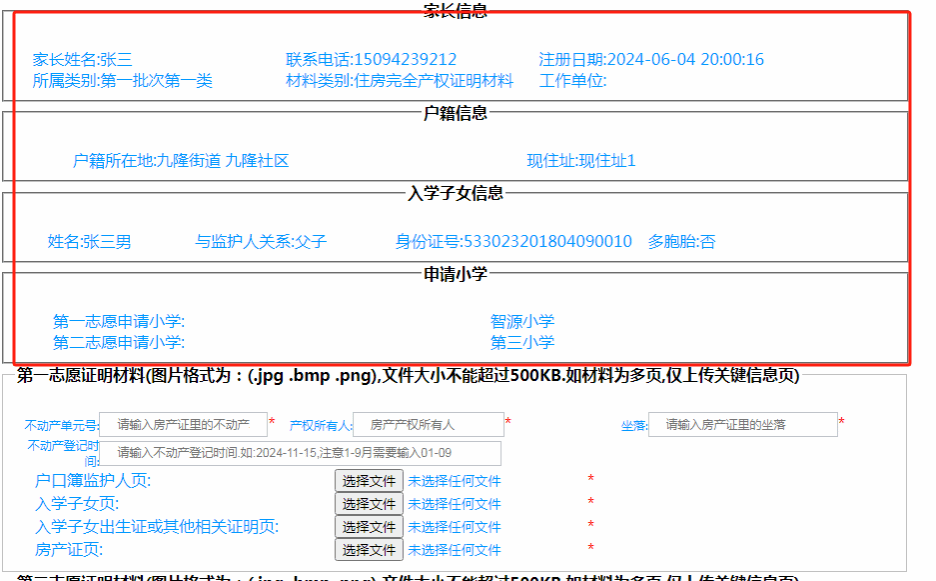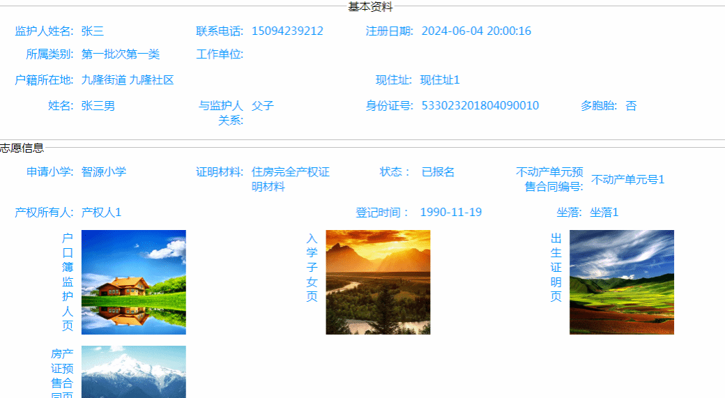 监护人通过该功能,将适龄子女的入学志愿信息录入系统中。