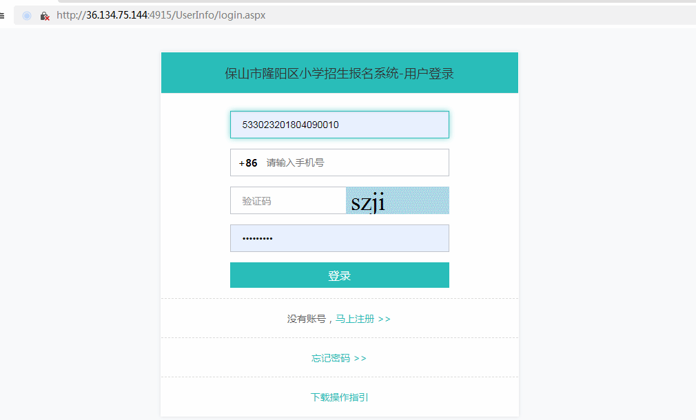 “养老保险缴费记录”:指养老保险缴费记录关键信息页;“无房证明”:指不动产管理中心出具的监护人双方无房证明;“住宿房东房产证复印件”:指住宿房东房产证复印件关键信息页;报名系统将根据监护人选择的类别,自动提示需填入的材料信息及需要上传的材料类型。在360浏览器地址栏中拷贝或者输入网址http://36.134.75.144:4915/userinfo/