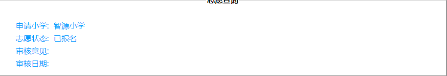 至此“填报志愿”完成,监护人请关注学校的通知短信或电话进行修改。请注意并核实短信及电话来源。监护人填报完志愿后,可以通过点击“查看志愿”,查看所填报的志愿信息,如有不对的地方,请点击“填报志愿”,进行修改。