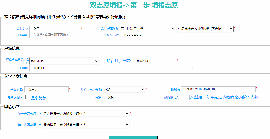 监护人通过该功能,将适龄子女的入学志愿信息录入系统中。
